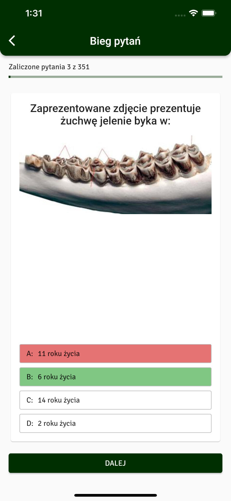 Zapoznaj się całą bazą pytań w specjalnym trybie nauki.Podczas biegu pytań poprawne odpowiedzi ujawniają się na bieżąco, a pytania na które nie znałeś odpowiedzi będą powtarzały się do skutku.